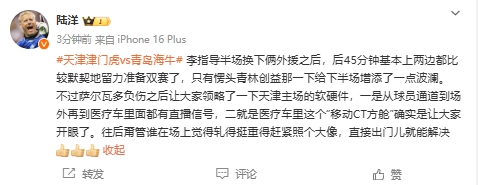 03月29日訊 中超第三輪,天津津門(mén)虎1-0青島海牛。媒體人陸洋在微博發(fā)文,稱贊天津主場(chǎng)的軟硬件設(shè)施。
