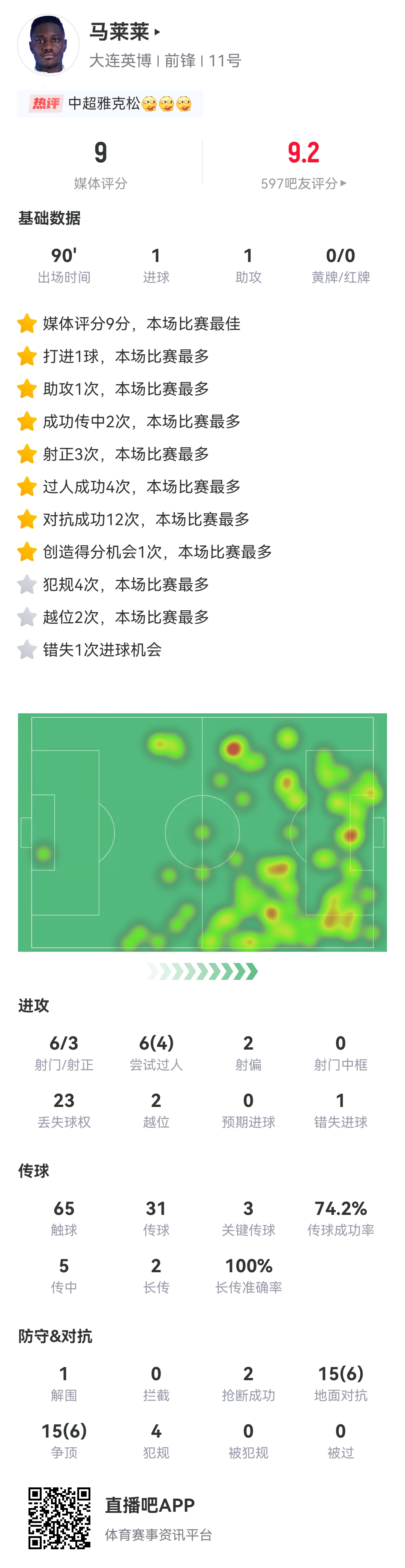 本場(chǎng)比賽馬萊萊在前場(chǎng)表現(xiàn)出色,多項(xiàng)數(shù)據(jù)本場(chǎng)比賽最佳。但同時(shí),馬萊萊也有打丟單刀,甚至是失空門的表現(xiàn)。
