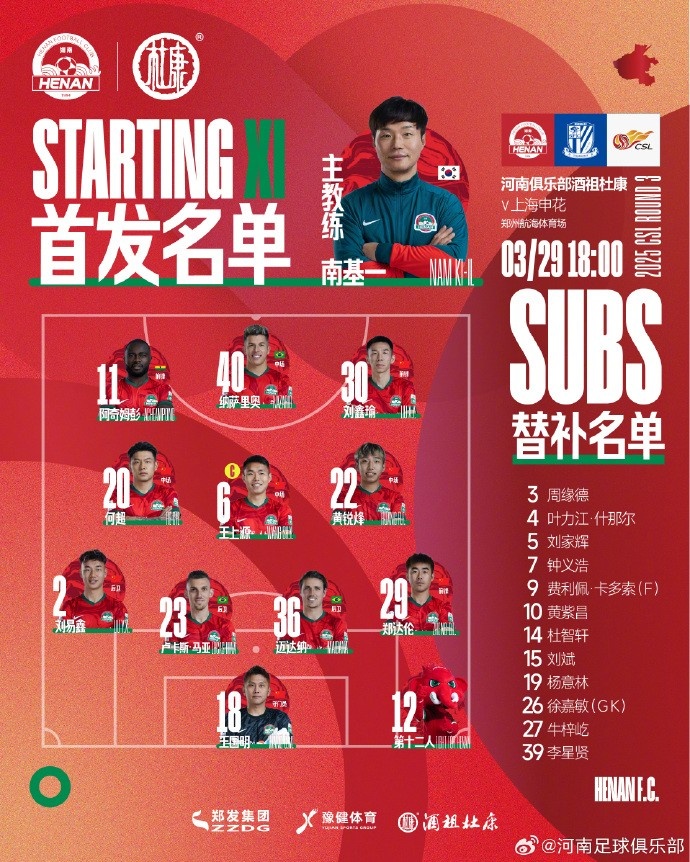 2025華潤(rùn)飲料中超聯(lián)賽第3輪河南俱樂(lè)部酒祖杜康VS上海申花首發(fā)及替補(bǔ)隊(duì)員名單????咪咕視頻 APP(二臺(tái)俱樂(lè)部官方直播間)/移動(dòng)高清/咪視界/五星體育 ??? 本文標(biāo)簽: 足球 中超 中國(guó)足球 河南 轉(zhuǎn)載