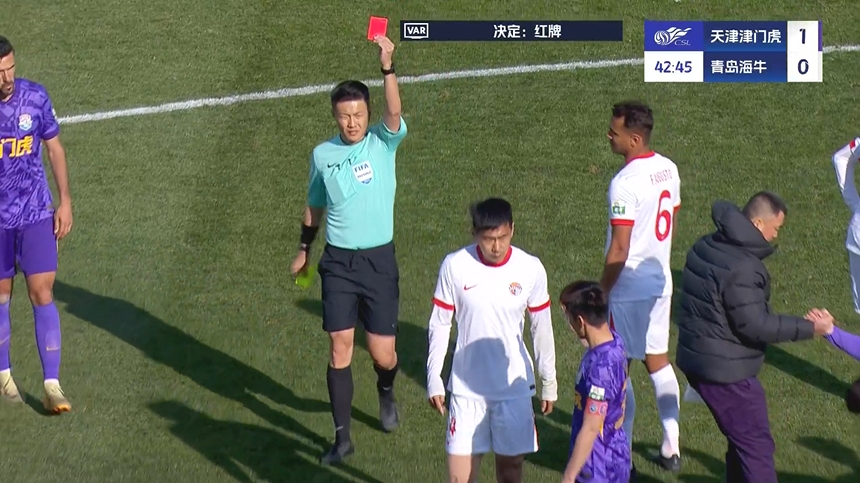03月29日訊 中超第三輪,津門虎vs海牛。第42分鐘,海牛后衛(wèi)金洋洋飛鏟哈達(dá)斯,主裁起初出示黃牌,VAR介入后主裁改判紅牌將其罰下! 本文標(biāo)簽: 足球 中超 中國足球 天津津門虎 青島海牛