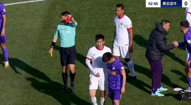 但經(jīng)VAR回放后改判直接紅牌將金洋洋罰下?!?/p>