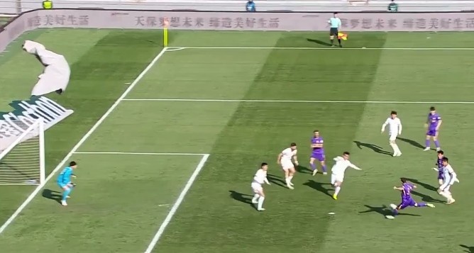 第21分鐘,孫銘謙打門被封堵,巴頓補射破門,但主裁判經(jīng)VAR確認后示意進球無效?!?/p>