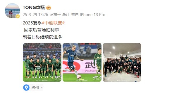 3月29日訊 在中超聯(lián)賽第3輪中,浙江隊客場4-0大勝武漢三鎮(zhèn),本場也是浙江隊在本賽季的首勝。比賽結束轉天,童磊更新微博,慶祝球隊取勝。此役童磊首發(fā)出戰(zhàn),在半場時被提前換下。在微博中,童磊發(fā)文說道:“2025賽季中超聯(lián)賽,回家后首場勝利????朝著目標繼續(xù)前進????”。 本文標簽: 足球 中超 中國足球 浙江