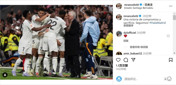 3月30日訊 西甲第29輪比賽,皇馬主場(chǎng)3-2逆轉(zhuǎn)萊加內(nèi)斯。皇馬主帥安切洛蒂社媒曬出與球員們慶祝的照片,并配文:“一場(chǎng)奉獻(xiàn)和犧牲精神帶來的勝利,我們繼續(xù)前進(jìn)!”此役過后,皇馬19勝6平4負(fù)積63分,與少賽一場(chǎng)的巴薩同分,凈勝球劣勢(shì)排名西甲第二位。 本文標(biāo)簽: 足球 西甲 皇家馬德里