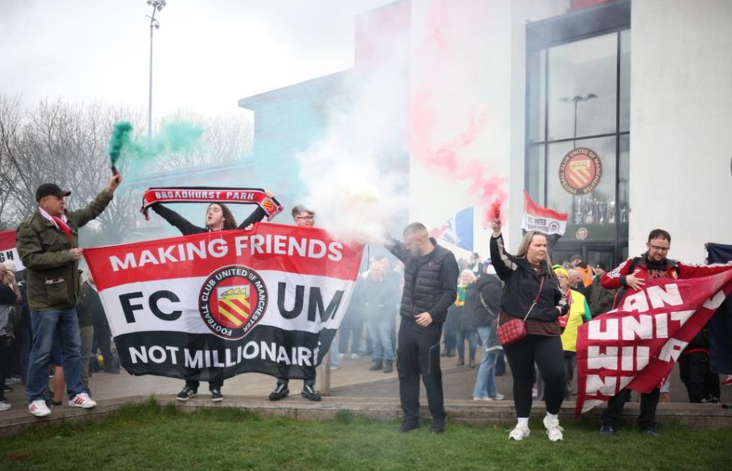 曼聯(lián)重要球迷組織1958近期持續(xù)在老特拉福德球場外抗議格雷澤家族所有權(quán),以及其他影響球迷文化的議題,今日兩大球迷群體共同表達對美資持有曼聯(lián)的反對立場。此外,曼聯(lián)球迷1958宣布將在下周日在老特拉福德球場與曼城的德比中舉行靜坐示威。
