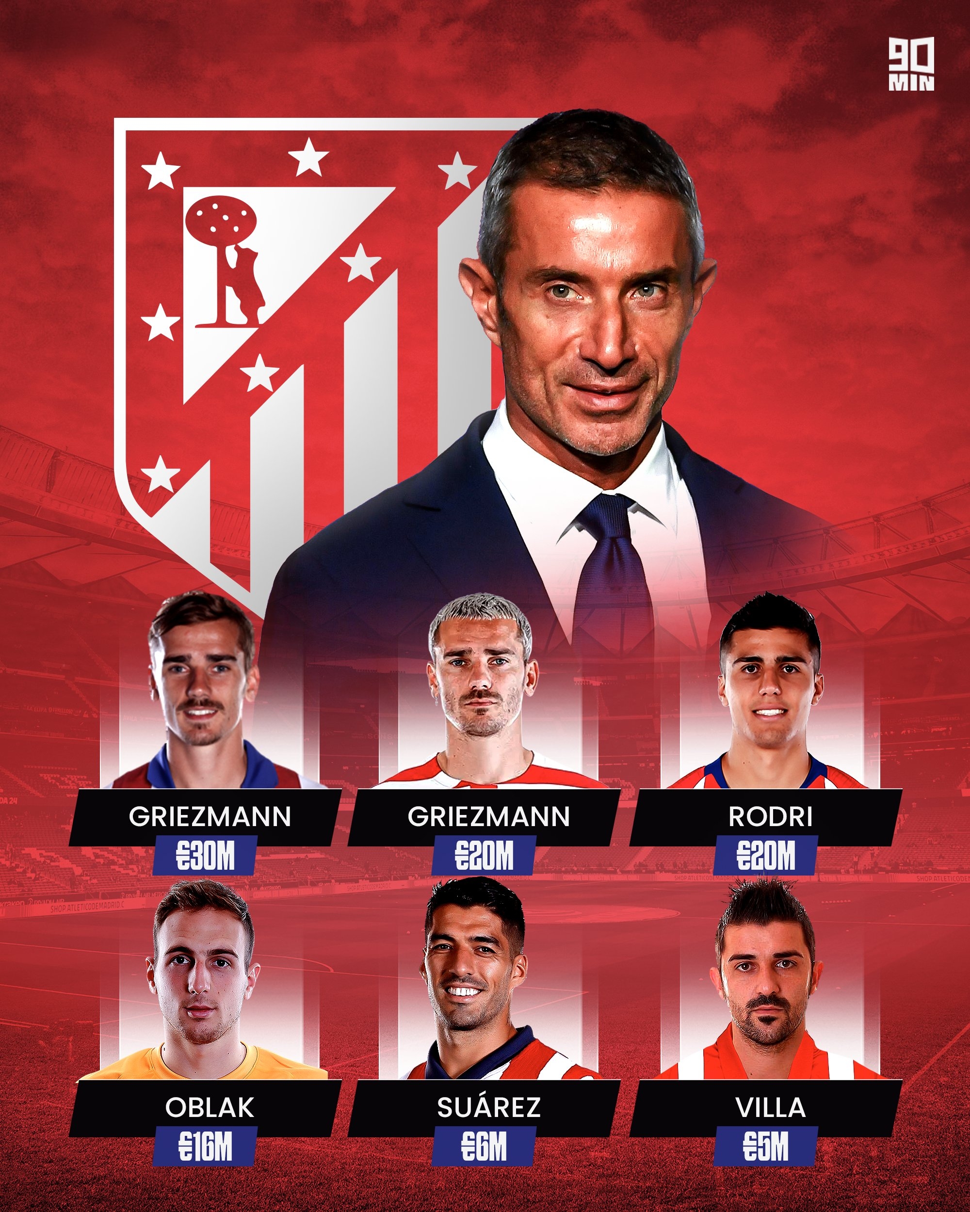 格列茲曼 - 2014年以2480萬英鎊從皇家社會簽下。2019年以1.03億英鎊賣給巴塞羅那。2021年以1650萬英鎊回購。