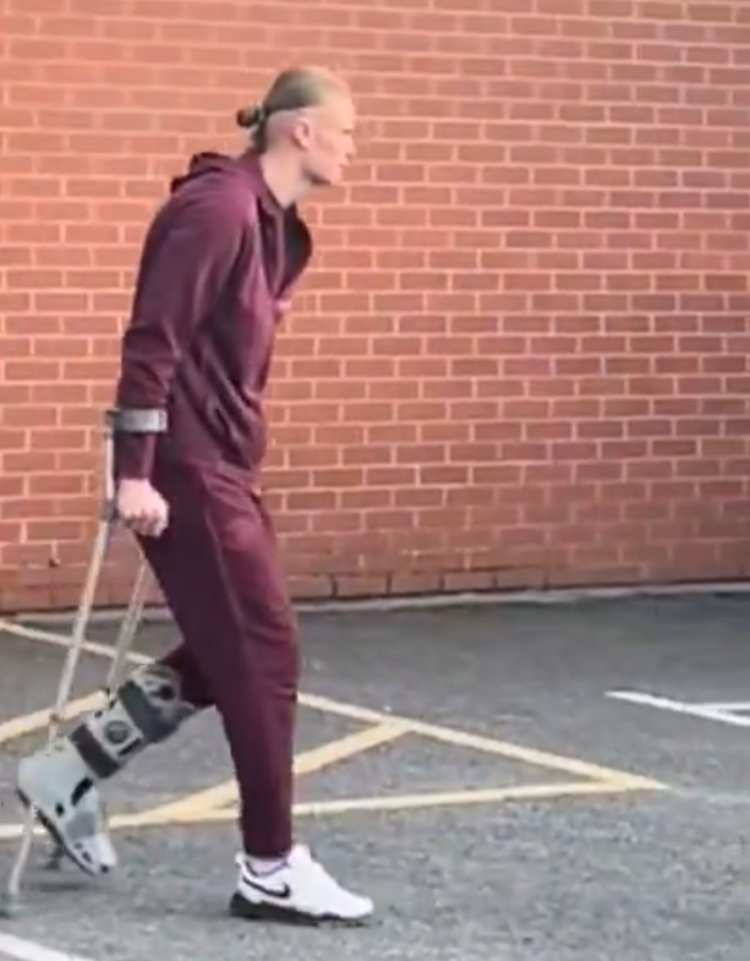 據(jù)悉,哈蘭德離開球場(chǎng)時(shí)看起來沒有表現(xiàn)出痛苦,但他拄著拐杖,左腿穿著防護(hù)靴行走。