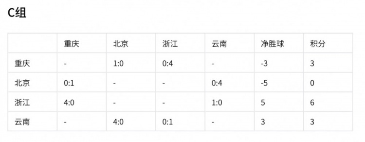 浙江隊(duì)已憑借6分和5個(gè)凈勝球提前出線。重慶和云南同積3分,重慶凈勝球?yàn)?-3,云南凈勝球?yàn)?,北京積0分已無緣出線。最后一輪重慶與云南的直接對(duì)話成為焦點(diǎn),根據(jù)規(guī)則,誰獲勝誰將獲得小組第二出線;若雙方打平,雙方各積4分,云南將因凈勝球優(yōu)勢(shì)獲得小組第二,重慶則積4分獲小組第三。浙江與北京的比賽勝負(fù)對(duì)大局無影響。