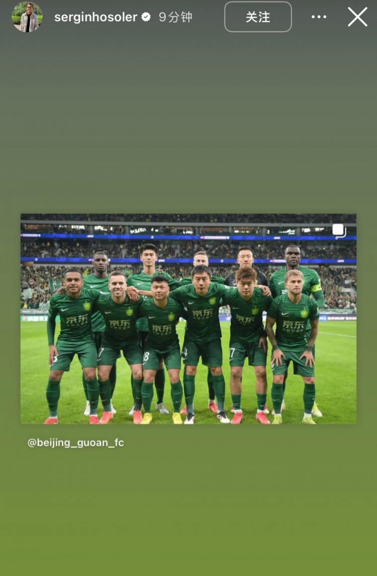 塞爾吉尼奧再更社媒曬與蓉城賽前合影,紀念自己的國安首秀