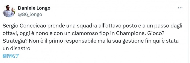 3月31日訊 米蘭跟隊記者隆戈社媒發(fā)文,批評了孔塞桑在米蘭的執(zhí)教表現(xiàn)。隆戈寫道:“孔塞桑接手了一支排名聯(lián)賽第8名,并且?guī)缀鯐x級歐冠16強的球隊,如今球隊排名聯(lián)賽第9名,歐冠慘淡出局。比賽風(fēng)格?戰(zhàn)術(shù)策略?他不是首要責(zé)任人,但到目前為止,他的執(zhí)教是一場災(zāi)難?!?/p> 本文標(biāo)簽: 足球 意甲 AC米蘭