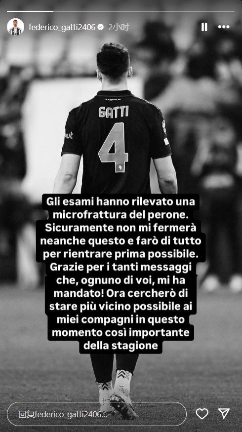 這名中衛(wèi)更新社媒,說道:經(jīng)檢查發(fā)現(xiàn)腓骨出現(xiàn)輕微骨折,這當然不會阻擋我,我會盡一切努力盡快回來,謝謝你們給我發(fā)來的信息,在本賽季現(xiàn)階段這樣非常重要的時刻,我會盡可能與我的隊友們保持密切聯(lián)系。