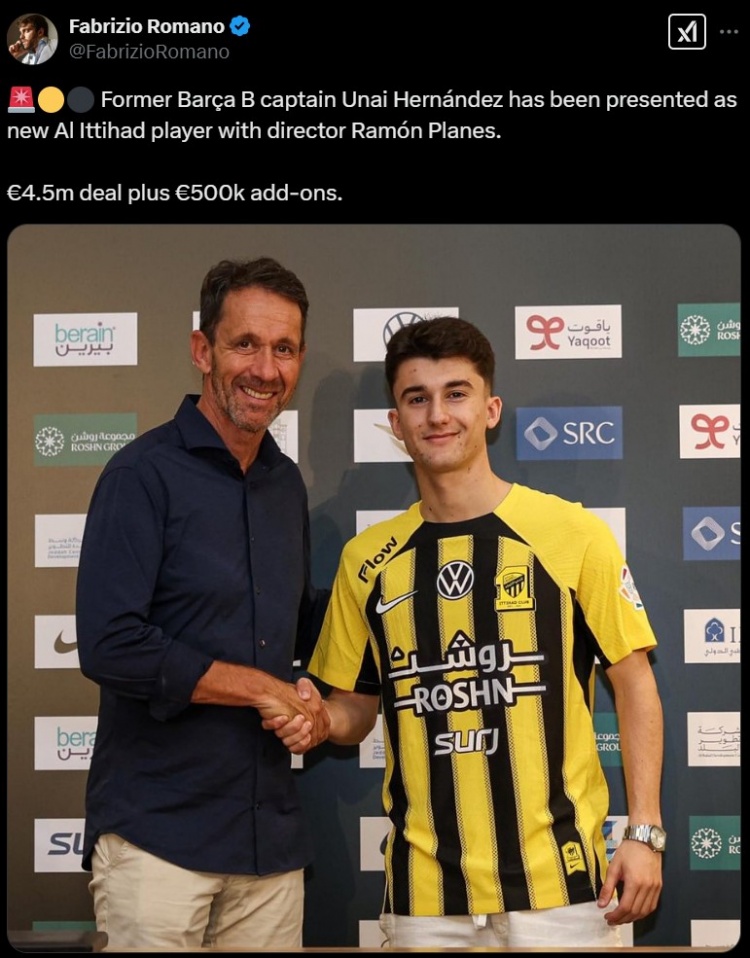 2月3日訊 據(jù)知名轉(zhuǎn)會專家羅馬諾報道,前巴薩B隊對長烏奈-埃爾南德斯加盟吉達(dá)聯(lián)合。報道稱吉達(dá)聯(lián)合將會為烏奈-埃爾南德斯支付450萬歐固定轉(zhuǎn)會費(fèi),還有50萬歐的浮動獎金。 本文標(biāo)簽: 足球 西甲 巴塞羅那