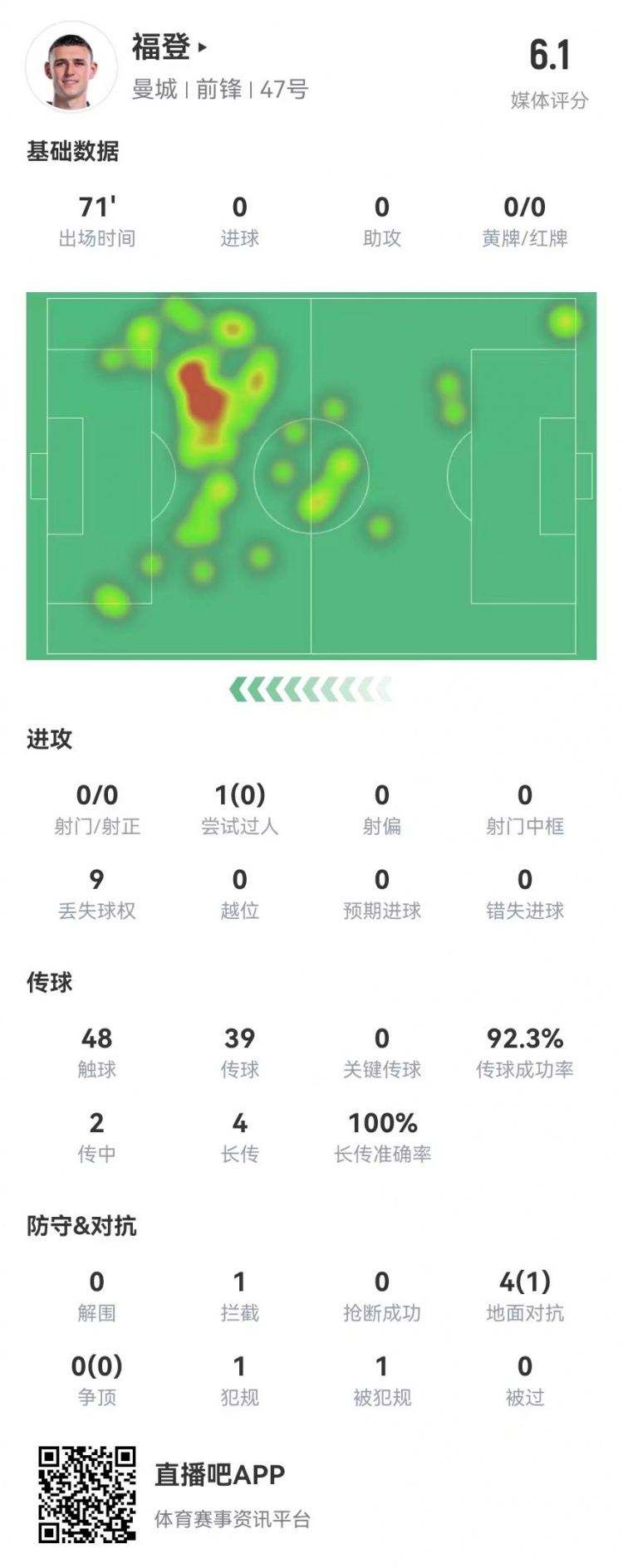 2月3日訊 阿森納在本輪英超主場對陣曼城,福登本場數(shù)據(jù)如下:首發(fā)出戰(zhàn)71分鐘48觸球39傳球、36成功,成功率92%2傳中、0成功4長傳、4成功1過人、0成功4對抗、1成功9丟失球權(quán)1犯規(guī)1造犯規(guī)1攔截1失誤導(dǎo)致丟球獲評6.1分 本文標(biāo)簽: 足球 英超 曼城 阿森納