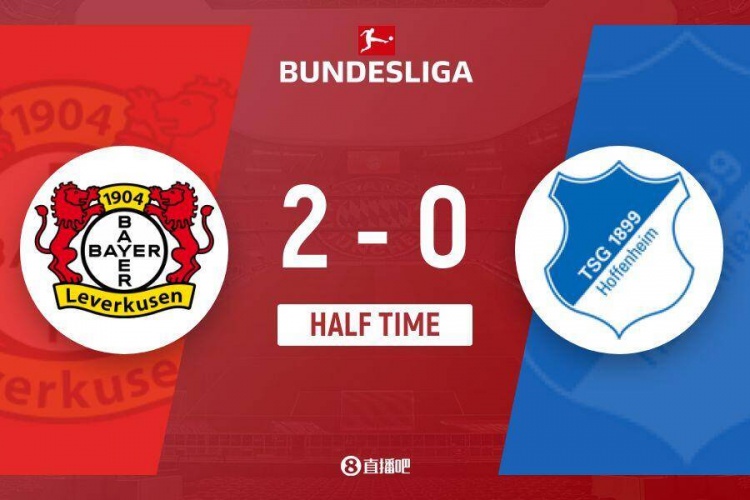 傷停補時4分鐘。上半場比賽結(jié)束,勒沃庫森2-0霍芬海姆。