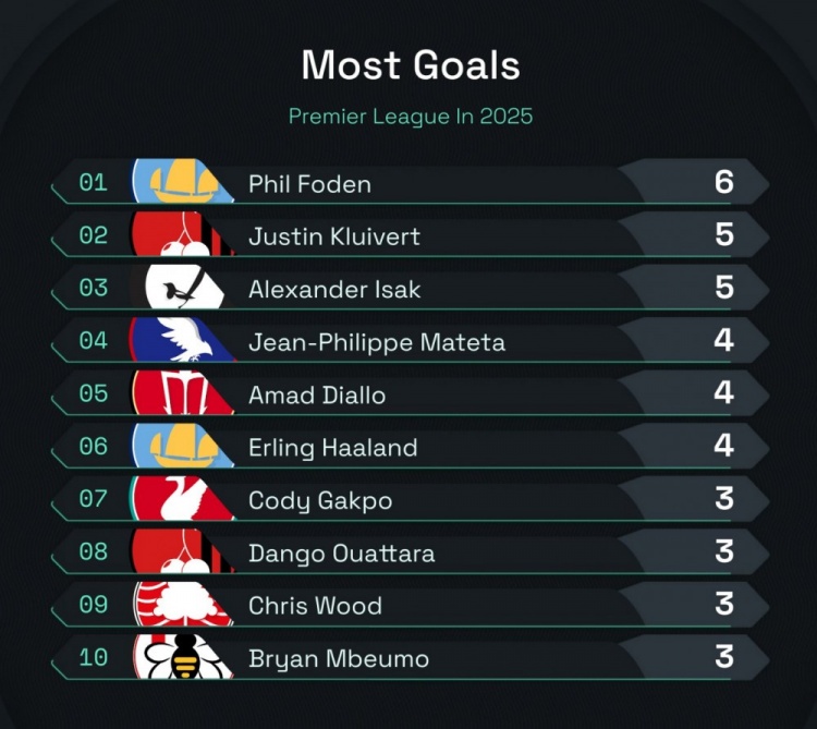 2025年英超進(jìn)球榜↓