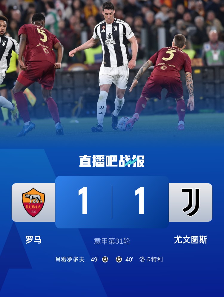 尤文1-1戰(zhàn)平羅馬,羅馬的聯(lián)賽7連勝遭終結(jié),不過紅狼軍團的聯(lián)賽不敗場次也來到15場。