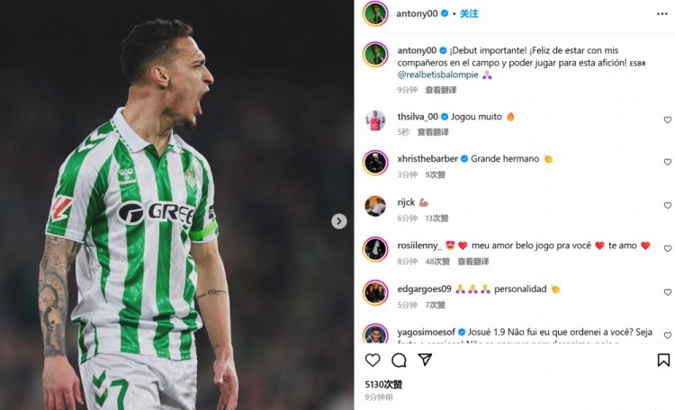 安東尼也在賽后通過(guò)社媒曬出慶祝照并配文:“關(guān)鍵的處子秀!很高興能夠和隊(duì)友們一起為眼前的球迷們奮戰(zhàn)?!?/p>