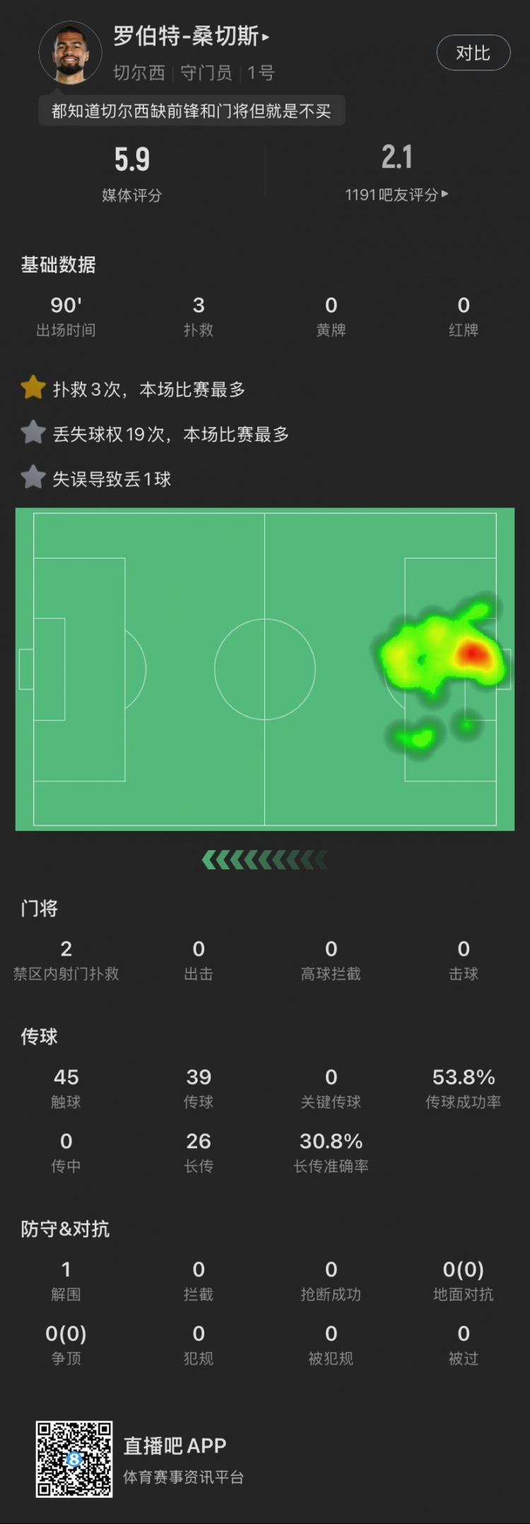 桑切斯本場(chǎng)數(shù)據(jù)↓