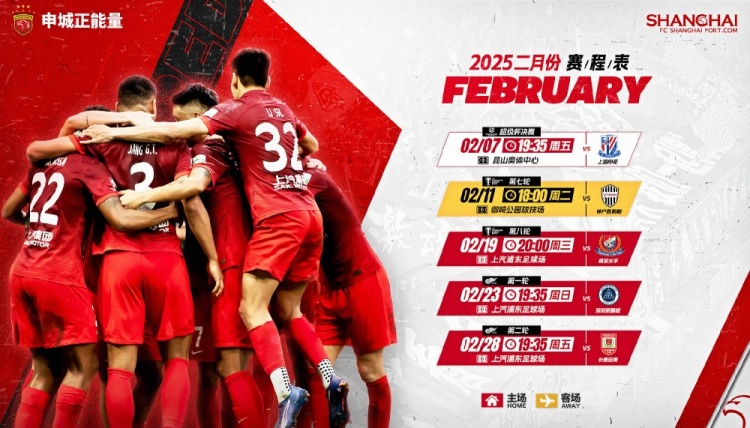 ?海港隊2月賽程?2025超級杯決賽?2024-2025賽季亞冠精英聯(lián)賽?2025華潤飲料中超聯(lián)賽全新賽季,全力以赴 本文標簽: 足球 中超 中國足球 上海海港 轉(zhuǎn)載