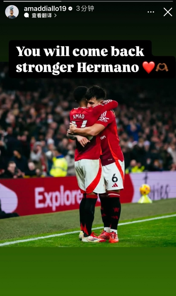 2月4日訊 多家媒體報(bào)道,曼聯(lián)中衛(wèi)利馬遭遇十字韌帶撕裂重傷,預(yù)計(jì)傷缺六個(gè)月時(shí)間。阿瑪?shù)赂律缑?,向利馬送上安慰。