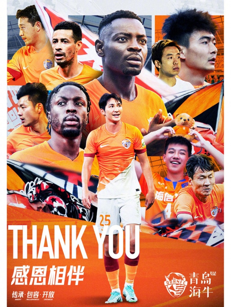 雖遺憾未來無法繼續(xù)并肩前行,但曾經(jīng)一起拼搏過的日子會久久留在青島海牛歷史的長河中。祝福你們未來一切順利!