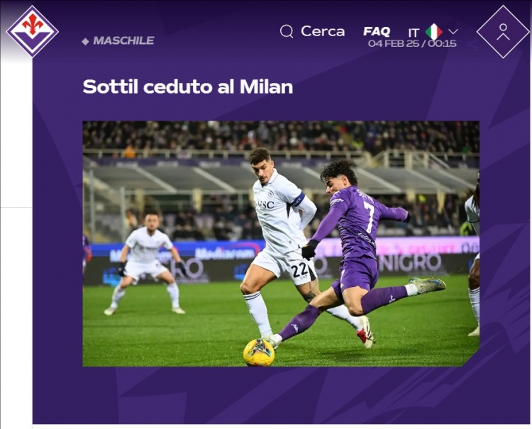 2月4日訊 佛羅倫薩官方宣布,將球隊(duì)邊鋒索蒂爾租借給米蘭。