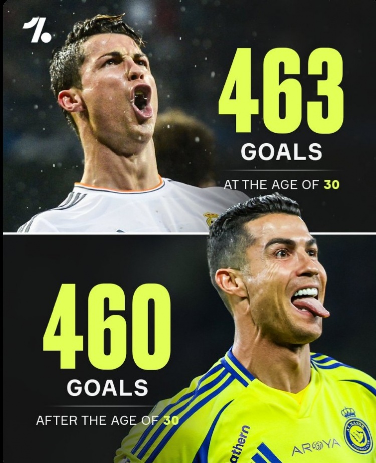 據(jù)統(tǒng)計,C羅在30歲之后各項賽事已經(jīng)打進460粒進球,此數(shù)據(jù)和他在30歲以及之前的進球數(shù)僅差3球。