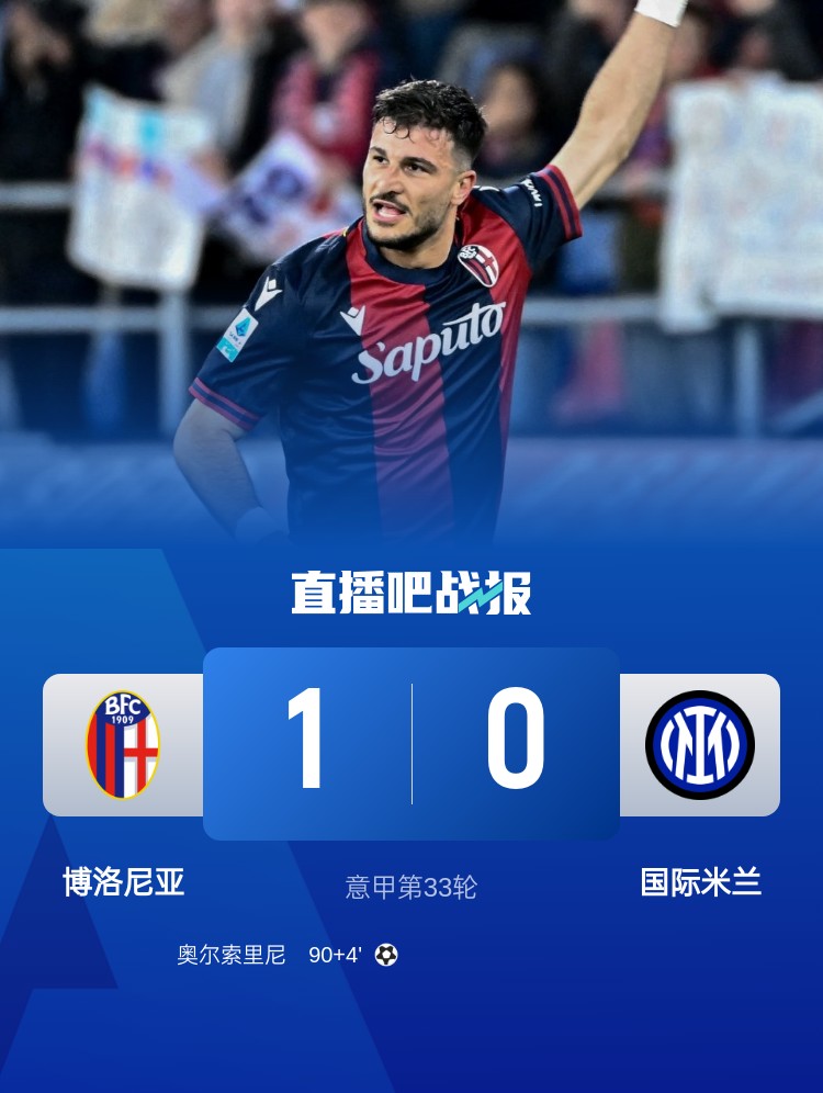意甲第33輪戰(zhàn)罷多場,國際米蘭0-1不敵博洛尼亞,那不勒斯1-0擊敗蒙扎,兩隊(duì)現(xiàn)意甲同積71分。