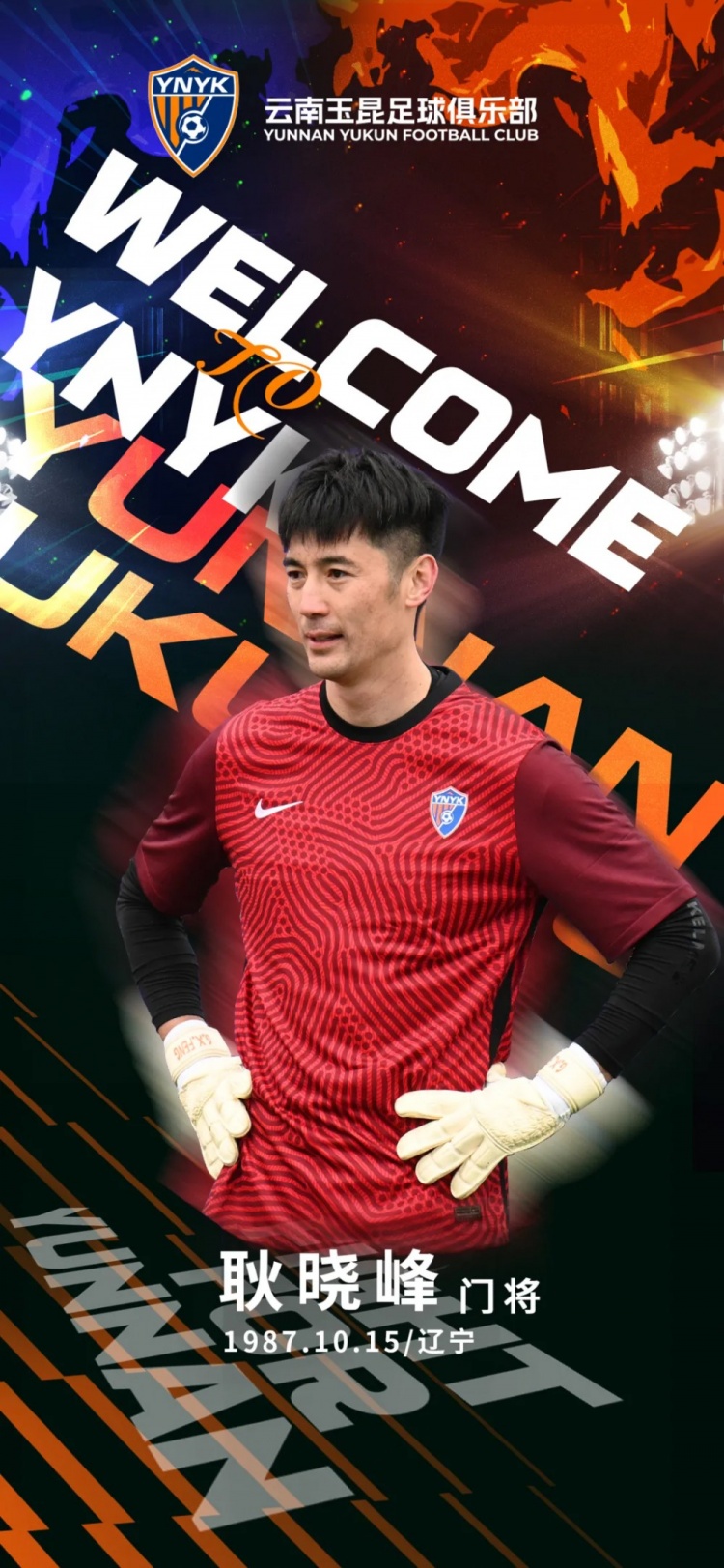 2月4日訊 中超升班馬云南玉昆俱樂部官方宣布,門將耿曉峰正式加盟球隊。