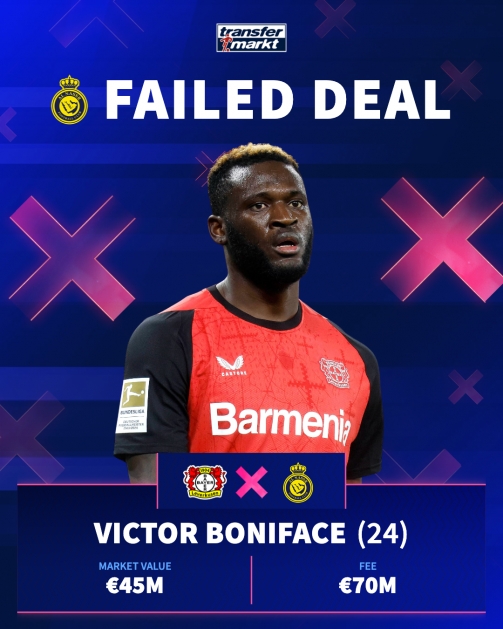 5、博尼法斯(勒沃庫森)→利雅得勝利