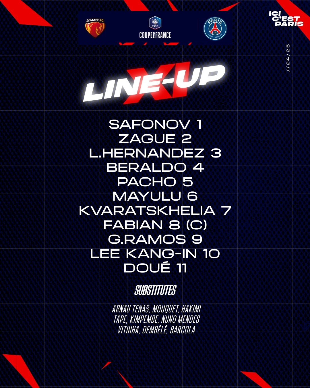 2月5日訊 在法國(guó)杯1/8決賽的一場(chǎng)比賽中,巴黎圣日耳曼客場(chǎng)對(duì)陣?yán)彰?,巴黎圣日耳曼的首發(fā)陣容如下:39-薩福諾夫、42-扎格、21-盧卡斯-埃爾南德斯、35-貝拉爾多、51-帕喬、24-馬尤盧、7-克瓦拉茨赫利亞、8-法比安-魯伊斯、9-貢薩洛-拉莫斯、19-李剛?cè)省?4-杜埃 本文標(biāo)簽: 足球 法甲 巴黎圣日耳曼