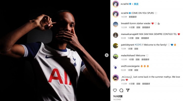 特爾在今日通過社媒曬出自己的定妝照,并配文:“熱刺加油?。–OYS)”。據(jù)悉列維專程飛赴慕尼黑游說這位法國小將,并且為租借5個月而支付了高達(dá)1000萬歐租借費。