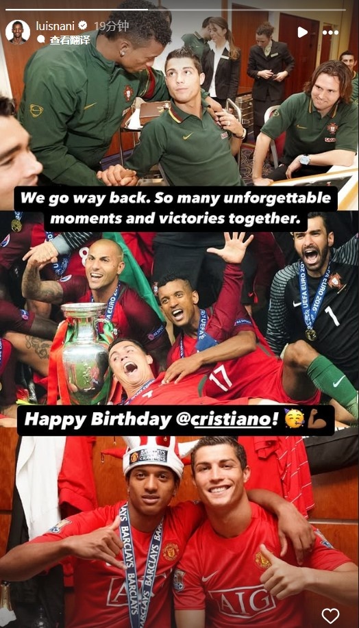 2月5日訊 今天是C羅的40歲生日,38歲的納尼更新動態(tài),送上了祝福。納尼表示道:“回顧過去,我們一起有很多難忘的瞬間和勝利時刻。生日快樂,C羅?!?/p>納尼和C羅在葡萄牙隊和曼聯(lián)當(dāng)過多年隊友,一起贏得過歐冠冠軍、歐洲杯冠軍在內(nèi)的多項冠軍。 本文標(biāo)簽: 足球 C羅 英超 曼聯(lián) 葡萄牙