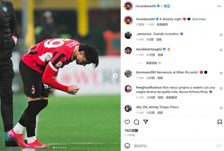 2月6日訊 米蘭在本輪意大利杯3-1力克羅馬,租借加盟的新援索蒂爾替補(bǔ)上演首秀。他也在賽后通過(guò)社媒曬出自己的登場(chǎng)照,并配文:“夢(mèng)幻般的一夜。”25歲的索蒂爾租借協(xié)議中包含選擇買斷條款,本賽季此前為佛羅倫薩出戰(zhàn)25場(chǎng),貢獻(xiàn)5球3助攻。 本文標(biāo)簽: 足球 意甲 AC米蘭 羅馬