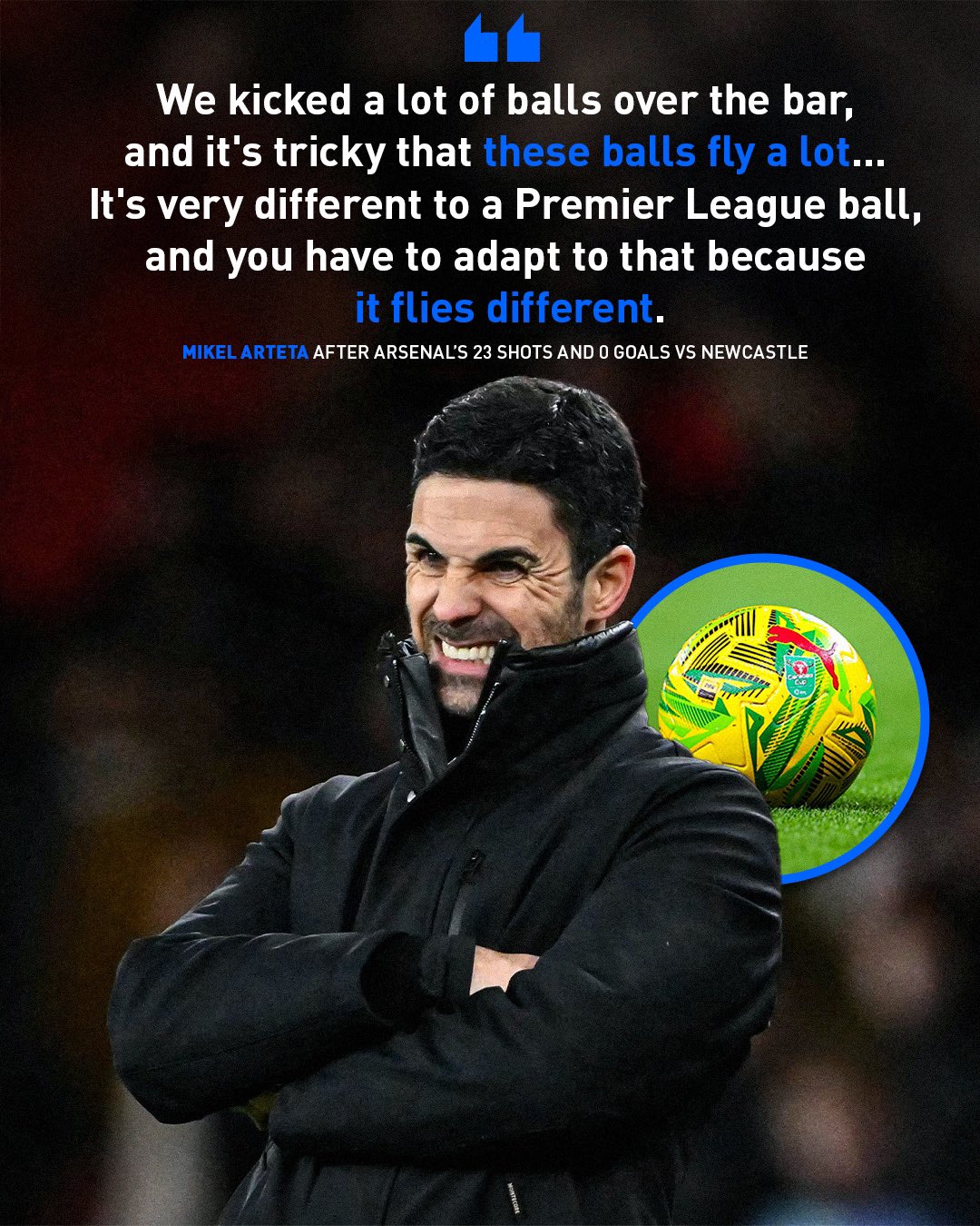 在首回合阿森納主場0-2不敵紐卡的賽后,阿爾特塔談到了比賽用球,表示聯(lián)賽杯用球與英超用球非常不同,必須要適應(yīng)?!?/u>