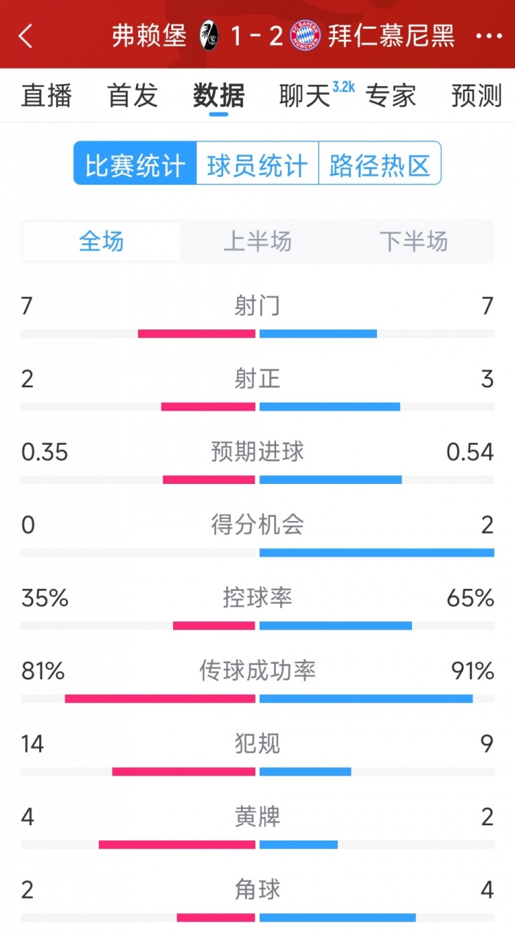 1月26日訊 在本輪德甲,拜仁2-1擊敗弗賴堡。以下為雙方全場數(shù)據(jù)對比:弗賴堡vs拜仁射門:7-7射正:2-3預(yù)期進(jìn)球:0.35-0.54得分機(jī)會:0-2控球率:35%-65%出傳球成功率:81%-90%犯規(guī):15-9黃牌:4-2角球:2-4 本文標(biāo)簽: 足球 德甲 拜仁慕尼黑