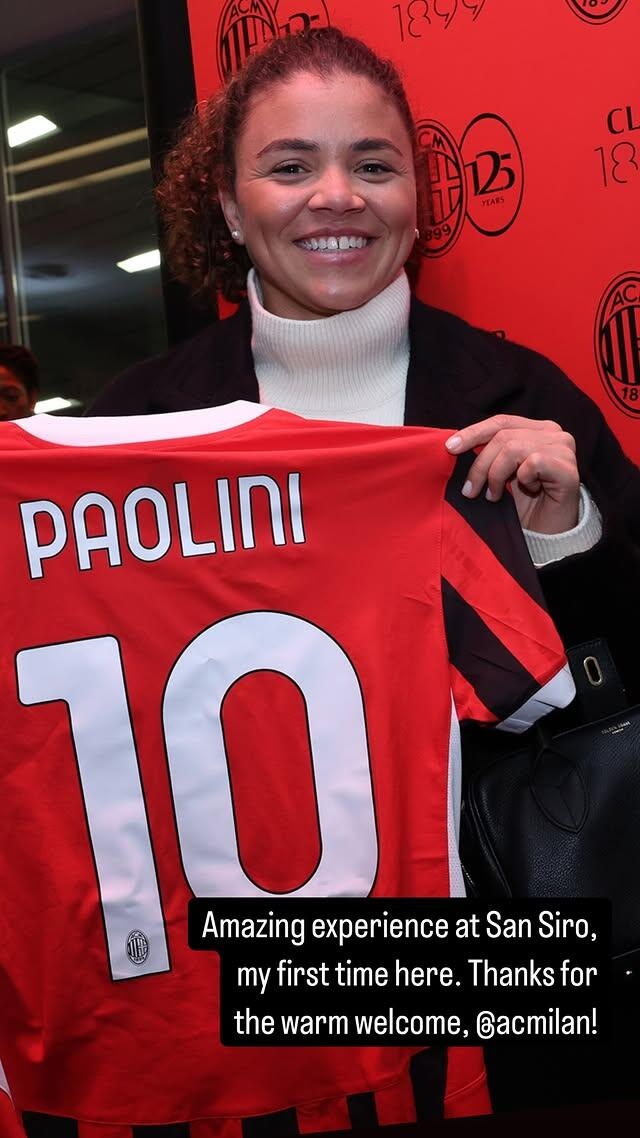 與此同時,保利尼還獲贈一件印有她名字的米蘭10號球衣,她在社媒寫道:“在圣西羅的非凡體驗,這是我第一次來這里,謝謝米蘭的熱烈歡迎?!?/p>