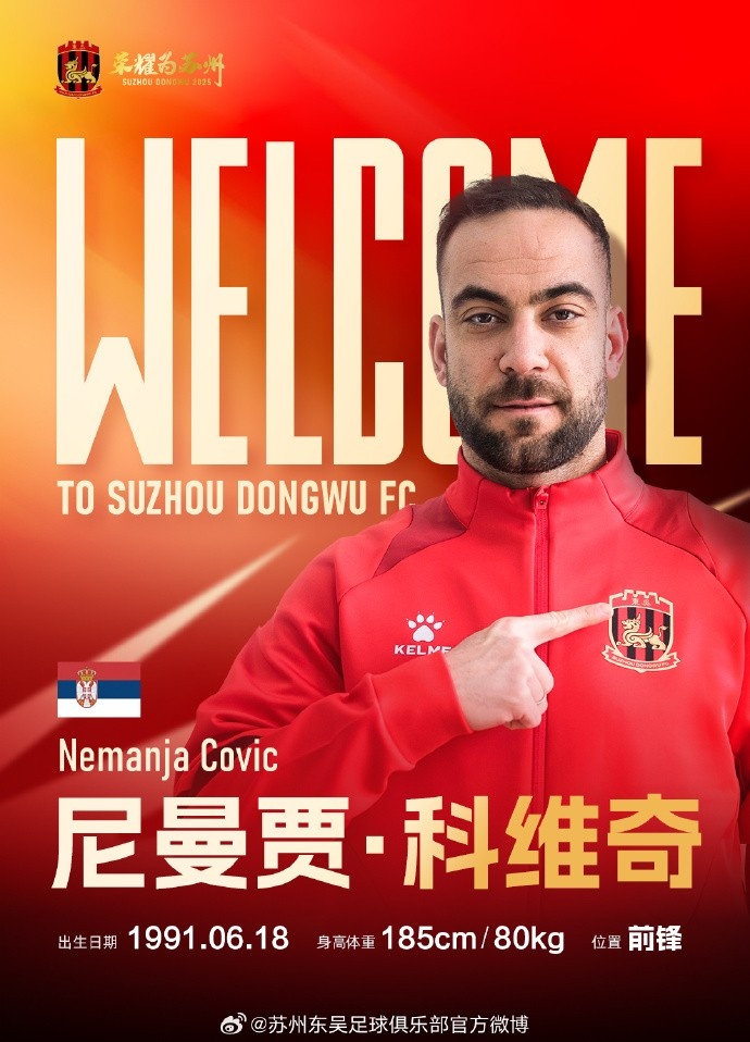 經(jīng)友好協(xié)商并達(dá)成一致,球員尼曼賈 · 科維奇、安德烈耶維奇正式加盟蘇州東吳足球俱樂(lè)部,為蘇州東吳出戰(zhàn)新賽季各項(xiàng)賽事。 ??? 本文標(biāo)簽: 足球 中超 中國(guó)足球 中甲 蘇州東吳