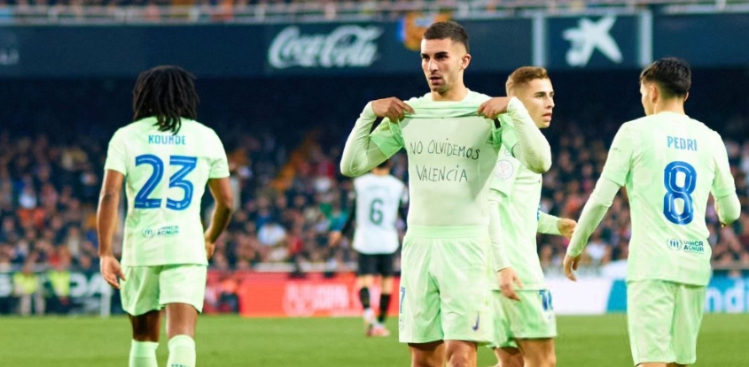 巴薩前鋒費蘭今日對陣老東家瓦倫西亞戴帽,他進球后沒有慶祝,并掀開球衣表示對瓦倫災民的紀念:“別忘記瓦倫洪水受害者”。從7歲開始就在瓦倫西亞青訓營成長的費蘭,于2018年加入一線隊,他為瓦倫西亞一線隊出戰(zhàn)過97場比賽,收獲9球12助。他在20歲的時候轉會曼城,22歲的時候轉會巴薩(轉會費5500萬歐+1000萬浮動)。(歡迎大家點點關注,隨老相館一起追憶往昔) 本文標簽: 足球 西甲 巴塞羅那 英超 瓦倫西亞