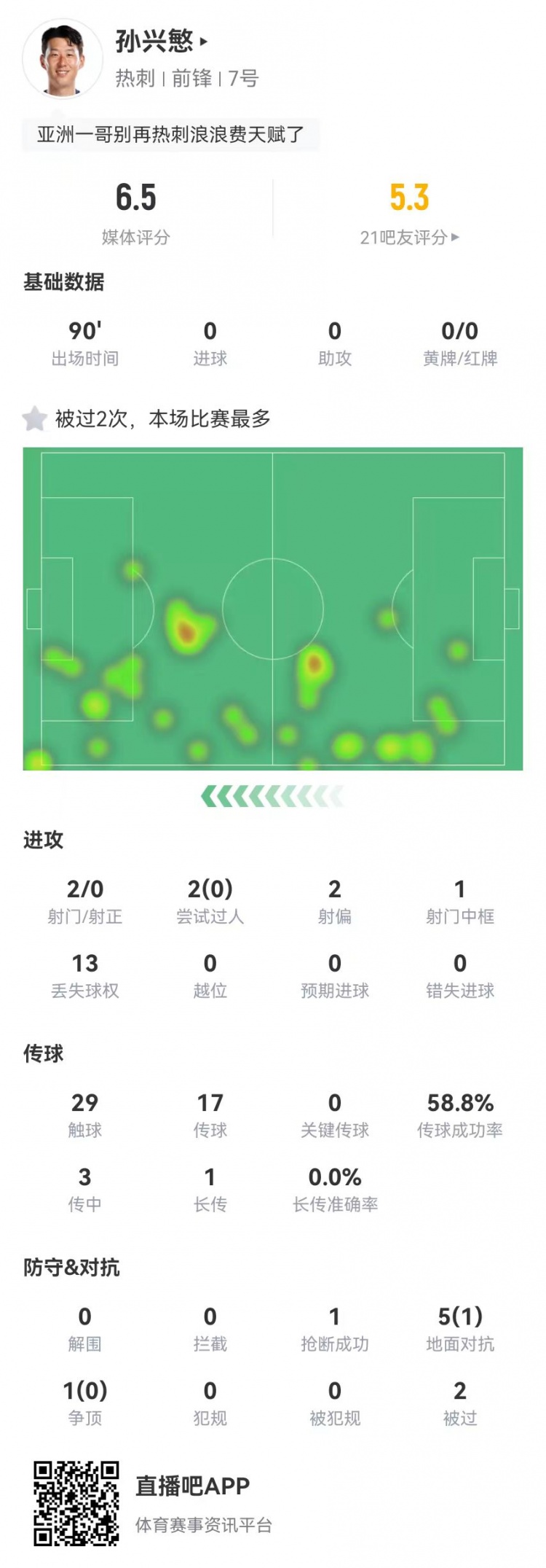 2月7日訊 熱刺在本輪聯(lián)賽杯被利物浦4-0擊敗,孫興慜本場數(shù)據(jù)如下:首發(fā)踢滿全場2射門、0射正2過人、0成功1中框29觸球17傳球、10成功,成功率59%3傳中、0成功1長傳、0成功6對抗、1成功13丟失球權(quán)1搶斷2被過獲評6.5分 本文標簽: 足球 英超 利物浦 熱刺