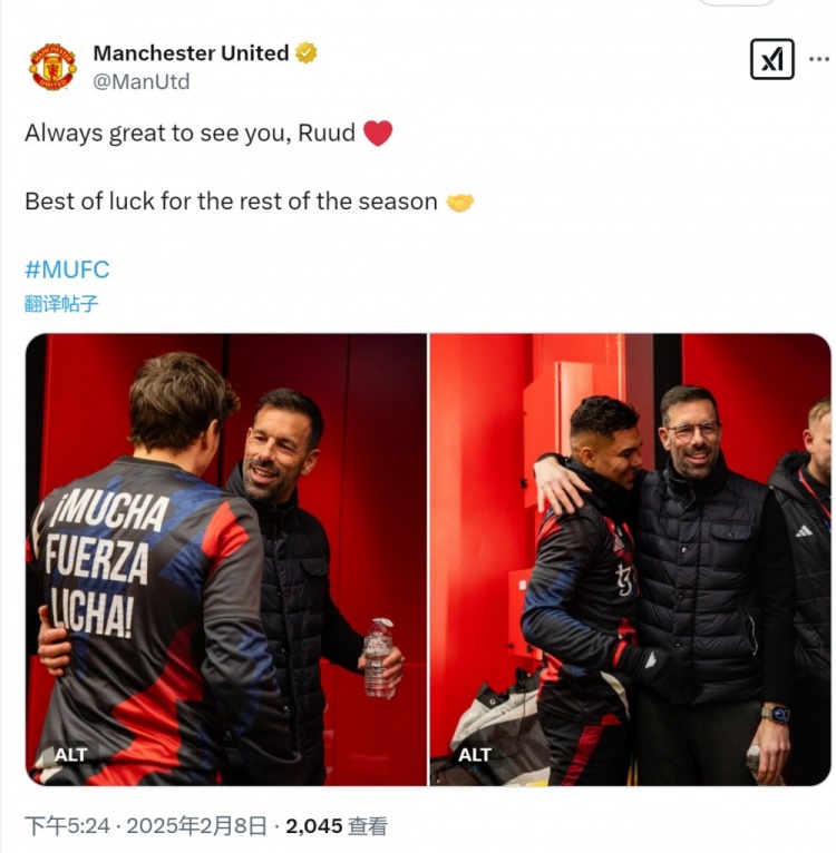 曼聯(lián)官方社媒曬出范尼的照片,配文:“很高興見到你,魯?shù)?。祝你本賽季剩余的比賽好運(yùn)?!?/p>