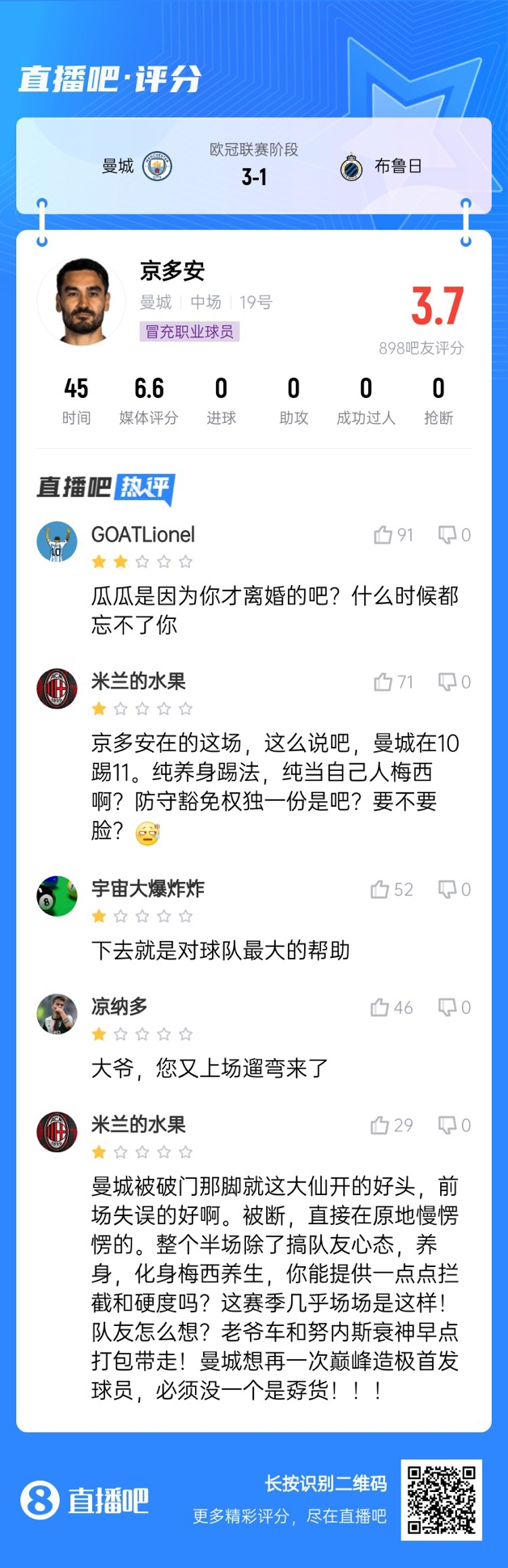 01月30日訊 歐冠聯(lián)賽階段末輪,曼城3-1逆轉(zhuǎn)布魯日,晉級附加賽,此役京多安首發(fā)踢后腰,半場被換下場。去年夏窗,京多安自由身重返曼城,簽約1+1合同。為了促成此次轉(zhuǎn)會,京多安放棄了他在巴薩剩余兩年合同的薪水。但是回歸藍(lán)月之后,京多安表現(xiàn)較為一般,各項賽事31場2球1助,防守端更是屢被詬病。 本文標(biāo)簽: 足球 英超 曼城