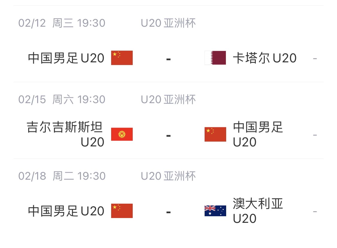 U20亞洲杯中國(guó)隊(duì)賽程: