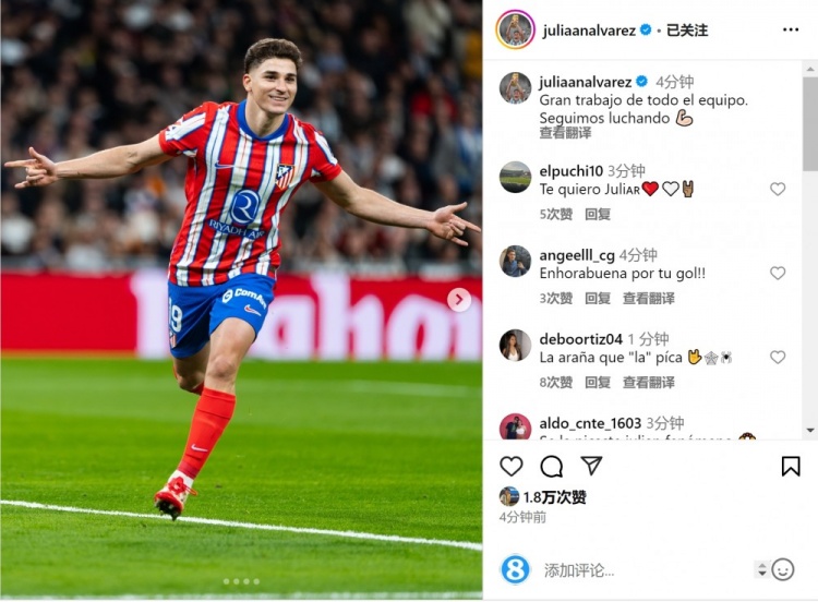 2月9日訊 西甲第23輪比賽,阿爾瓦雷斯點射破門,幫助馬競客場1-1戰(zhàn)平皇馬,他當選本場比賽最佳球員。阿爾瓦雷斯社媒曬出自己慶祝進球的照片,配文:“整支球隊都表現(xiàn)出色,我們繼續(xù)戰(zhàn)斗!”阿爾瓦雷斯本賽季為馬競出戰(zhàn)36場各賽事比賽,打進17球,助攻4次。 本文標簽: 足球 西甲 馬德里競技