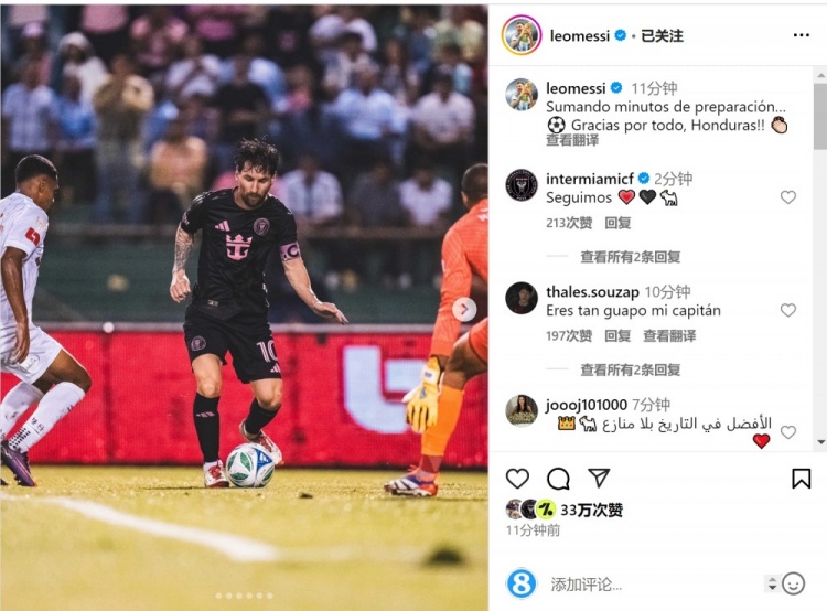 此役在洪都拉斯奧林匹克大都會(huì)球場(chǎng)進(jìn)行,賽后梅西在社交媒體上曬出自己的照片,配文:“備戰(zhàn)階段增加了一些比賽時(shí)間,感謝你們所做的一切,洪都拉斯!”