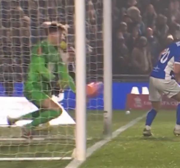 比賽第21分鐘,威洛克的射門被伯明翰城門將撲出,由于足總杯第4輪沒有VAR,在邊裁示意皮球完全越過門線后,主裁判定進球有效,但從回放來看,這球未必100%越過門線。
