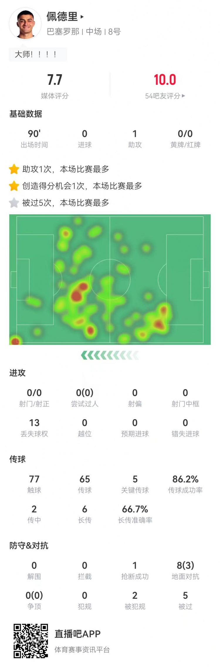 2月10日訊 巴薩在本輪西甲4-1擊敗塞維利亞,佩德里本場數(shù)據(jù)如下:首發(fā)踢滿全場1助攻預(yù)期助攻0.7677觸球65傳球、56成功,成功率86%5關(guān)鍵傳球2傳中、0成功6長傳、4成功1創(chuàng)造重大機(jī)會7對抗、3成功14丟失球權(quán)2造犯規(guī)1搶斷4被過獲評7.7分 本文標(biāo)簽: 足球 西甲 巴塞羅那 塞維利亞