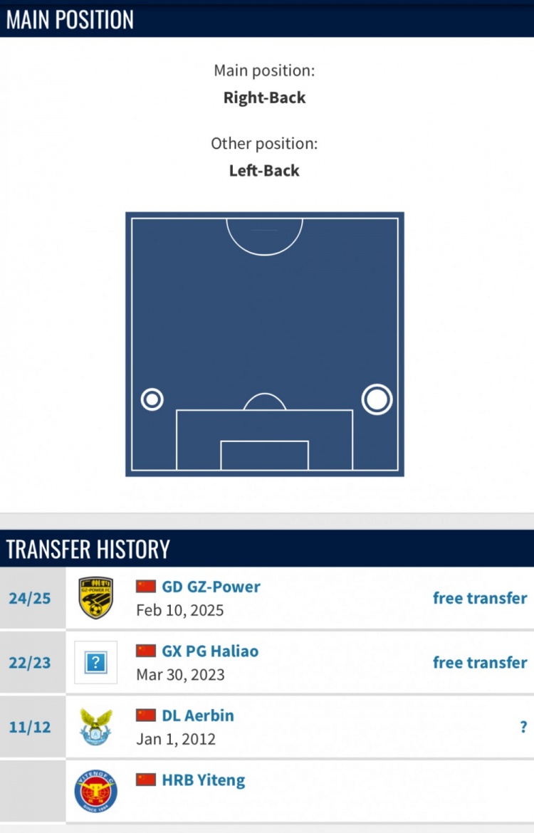 在德轉(zhuǎn)單鵬飛的個人頁面中,他已經(jīng)于2月10日加盟廣州豹,但合同年限并未披露。本次單鵬飛屬于自由身轉(zhuǎn)會,因此廣州豹無需支付轉(zhuǎn)會費(fèi)用。