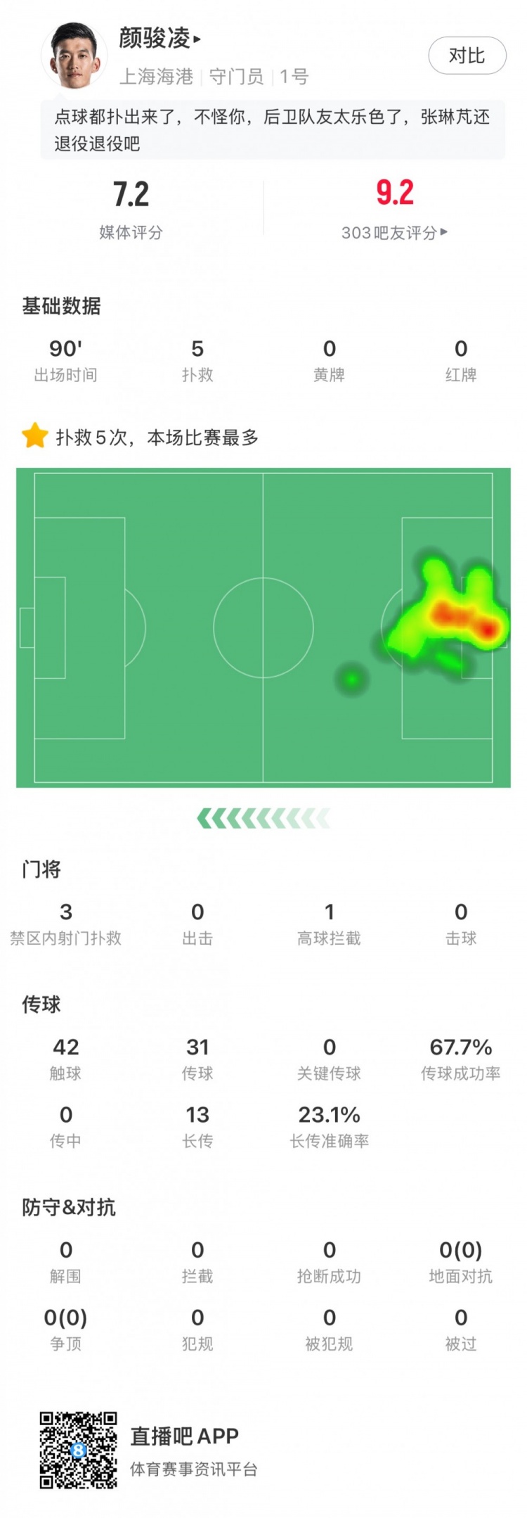 全場(chǎng)比賽顏駿凌貢獻(xiàn)數(shù)次撲救,還將大迫勇也的點(diǎn)球拒之門外,但仍無力幫助球隊(duì)扭轉(zhuǎn)頹勢(shì),賽后他獲得隊(duì)內(nèi)最高的7.2分。