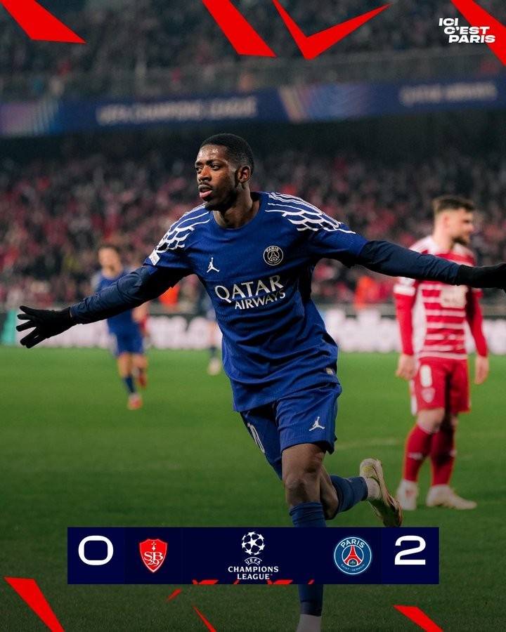 2月12日訊 巴黎在本輪歐冠附加賽2-0領(lǐng)先布雷斯特,登貝萊連場(chǎng)破門(mén)。